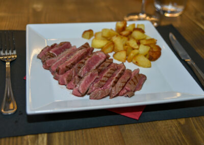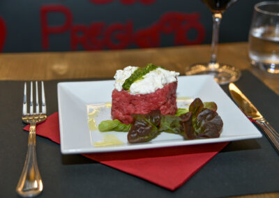 Dalla battuta al coltello al carpaccio ed alle tagliate, passando per un’ampia serie di proposte CBT, fino a fiorentine e costate sia di Fassona che di altre ricercate provenienze di qualità.